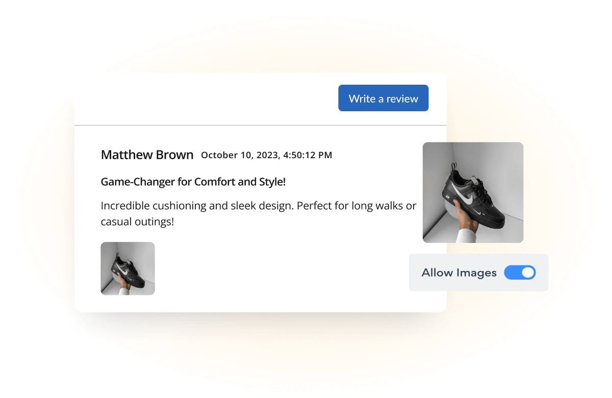 Display social proof on your website by enabling customers to add images to their product reviews.