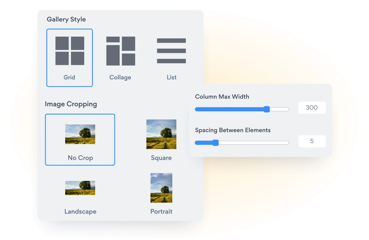 Arrange your blogs in a grid or collage format. Crop your images and adjust width and spacing.