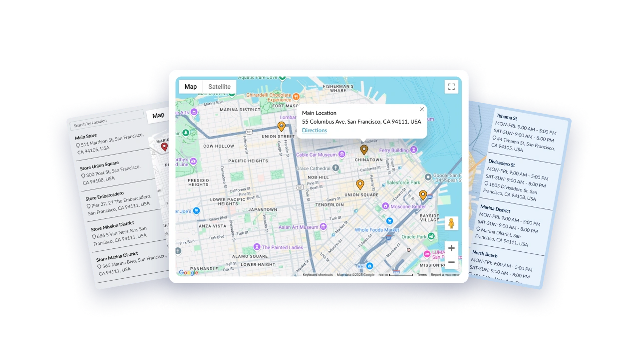 A map app on your website will keep visitors on your page for longer. It allows them to see what else your business offers and can increase the chances they will make a purchase.